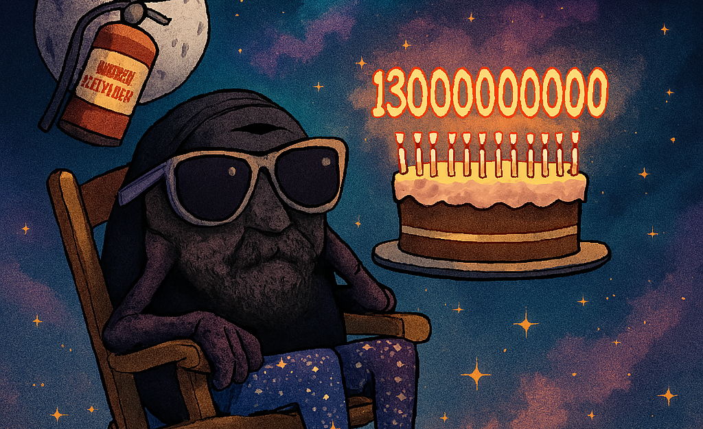 In a universe where age is just a number (unless you're a black hole), Grandpa Void has emerged as the oldest-known cosmic entity—grumbling at galaxies, devouring matter, and committing fashion crimes in galaxy-print spandex. With Dr. Imaginarius launching a candle Kickstarter and issuing a stern style intervention, this parody dives into the gravitational drama of a celestial senior citizen who refuses to act his age.